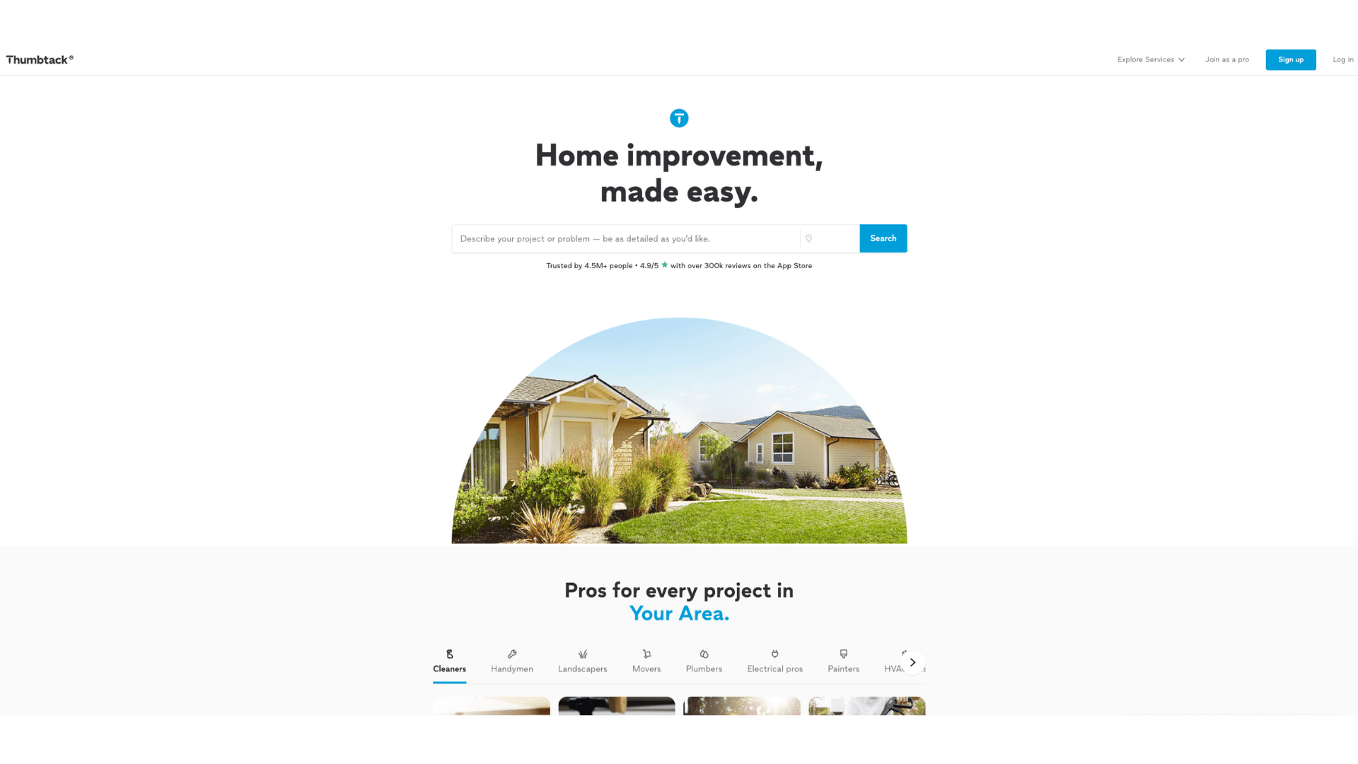 Thumbtack is one of the most recognized local-services marketplaces in the U.S., connecting millions of homeowners with skilled pros nationwide. The company is valued at $2B+, supports 1,000+ service categories, and facilitates tens of millions of service requests across home improvement, wellness, events, and education each year.